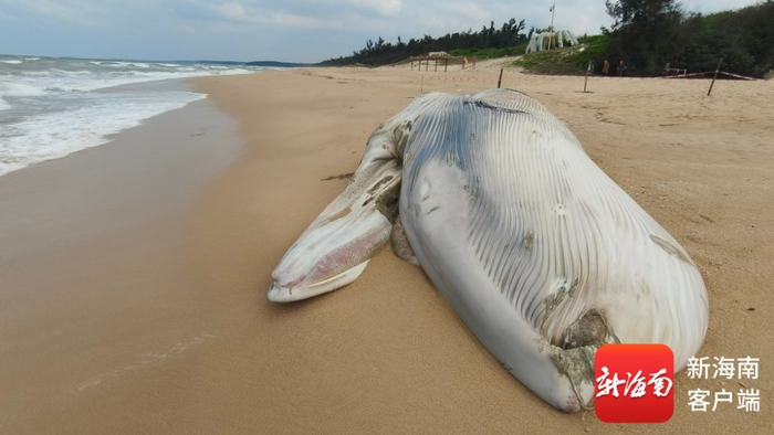 海城鑫弘生物科技有限公司经理李晓虹介绍,海城鑫弘生物科技有限公司工作人员已于15日在鲸鱼搁浅地,海南昌江棋子湾发现一头搁浅的鲸鱼。后续会将多余的肌肉和组织进行无害化处理,推测已死亡多时。工作人员 薛美丽 摄">11月14日,